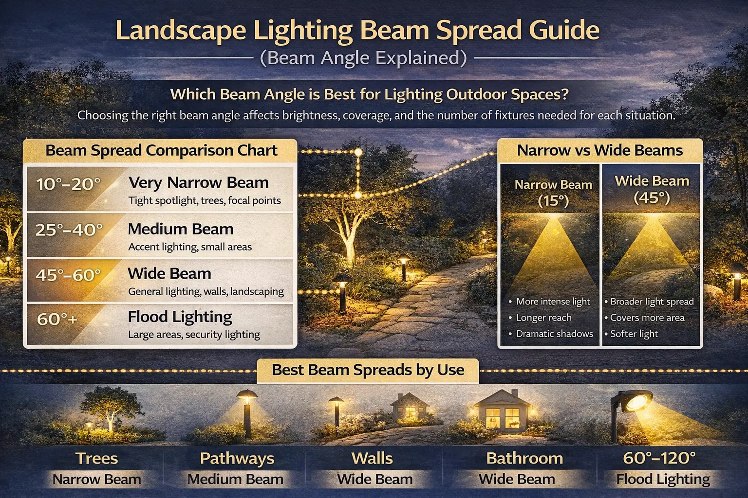 Beam spread also affects how many fixtures you need, which directly impacts your budget. This landscape lighting cost guide explains how fixture count influences total cost.